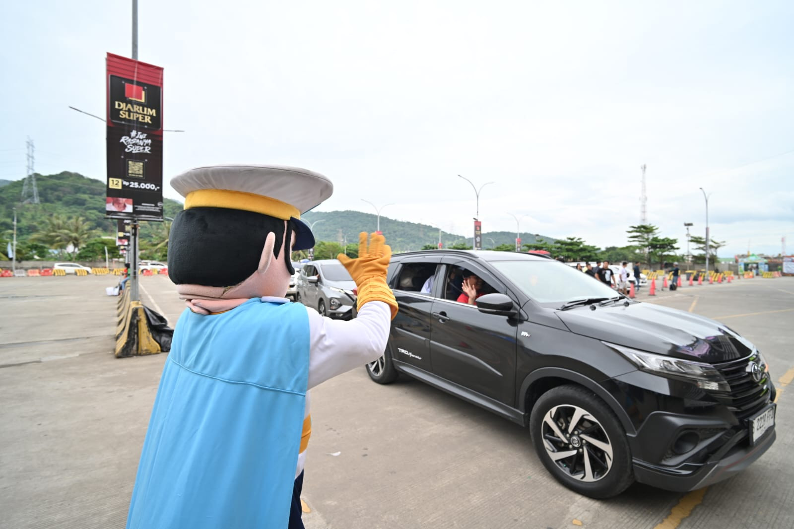 Merak, 29 Maret 2025 --- PT ASDP Indonesia Ferry (Persero) mencatat total 154.882 orang dan 17.984 unit kendaraan roda empat menyeberang pada puncak arus mudik lintasan penyeberangan Jawa menuju Sumatera saat H-3 Lebaran atau Jumat (28/3). Total ini meningkat hingga 1,3% dibandingkan tahun sebelumnya. Meskipun terdapat kenaikan jumlah kendaraan, kondisi trafik pelabuhan masih terpantau ramai lancar.