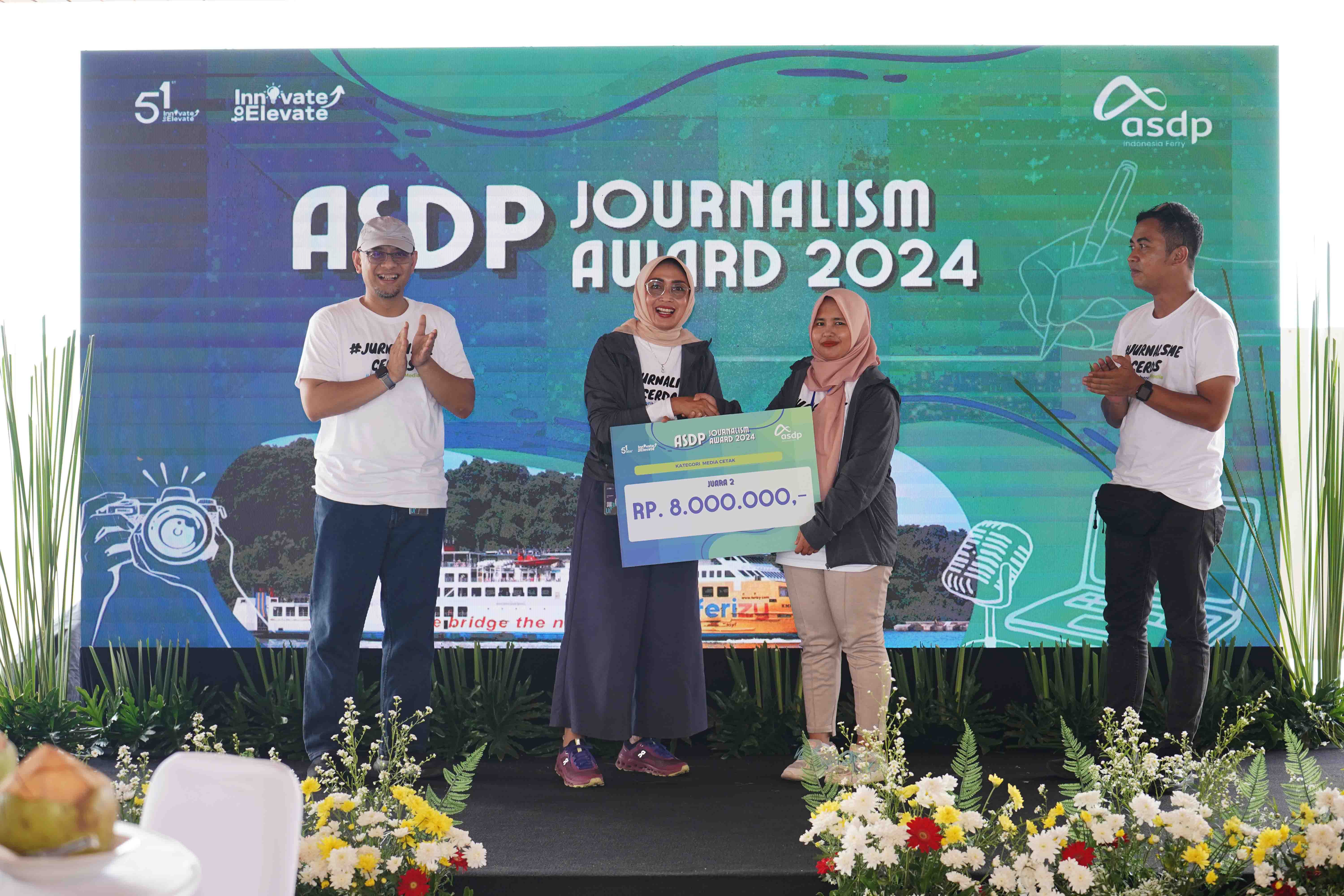 Apresiasi bagi Insan Pers, Tiga Belas Media Nasional Berhasil menjadi Juara ASDP Journalism Awards 2024 13 Juni 2024 Lampung, 13 Juni 2024 --- PT ASDP Indonesia Ferry (Persero) mengumumkan para pemenang ASDP Journalism Awards 2024 pada Rabu (12/6). Penghargaan ini merupakan bentuk apresiasi tertinggi yang diberikan ASDP kepada para insan pers di seluruh Indonesia atas dedikasi dan karya jurnalistik yang telah dib...
