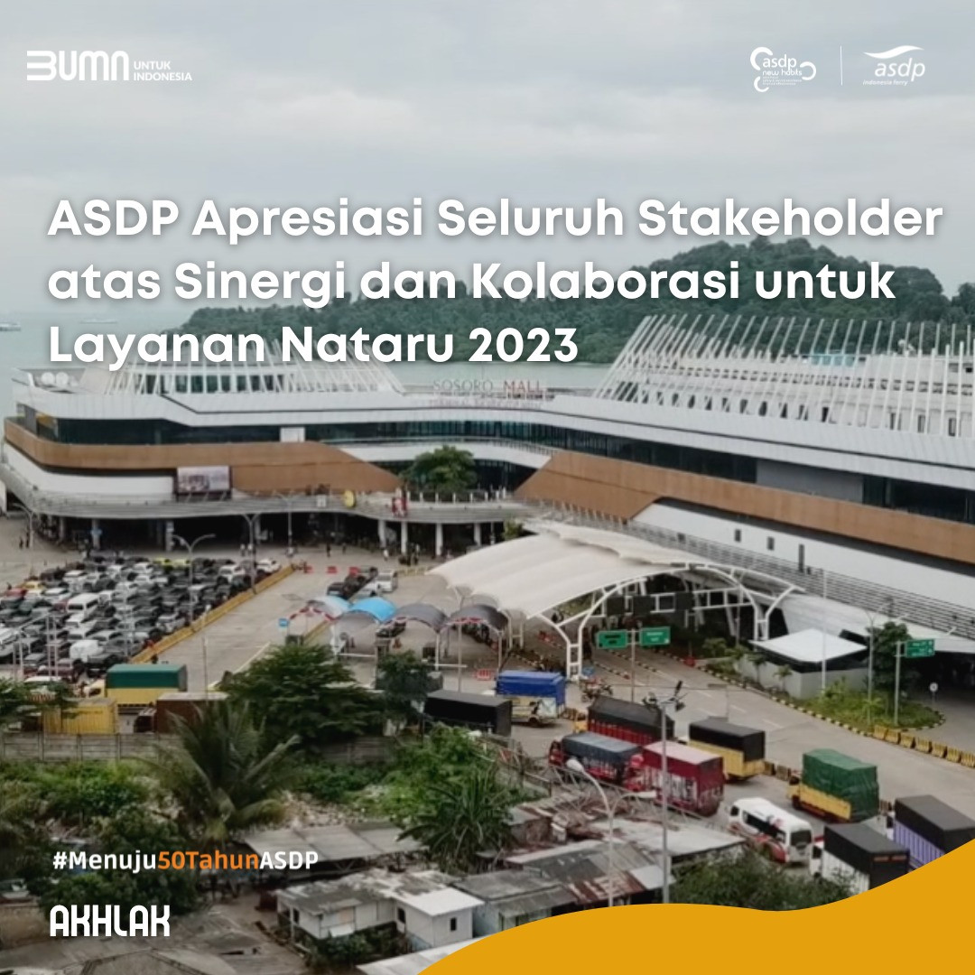 8 Januari 2023Selama periode Nataru, Layani 2,67 Juta Penumpang dan 654 Ribu Unit KendaraanJakarta, 8 Januari 2023 --- PT ASDP Indonesia Ferry (Persero) telah sukses melayani sekitar 2,67 juta penumpang dan 654 ribu unit kendaraan selama periode Angkutan Natal dan Tahun Baru 2023 mulai Sabtu (17/12) atau H-8 hing...