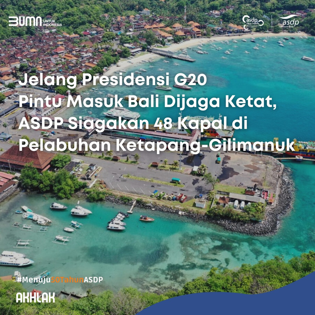 9 November 2022Ketapang, 9 November 2022 --- PT ASDP Indonesia Ferry (Persero) memastikan telah mempersiapkan prasarana dan sarana layanan penyeberangan guna mendukung perhelatan Presidensi G20 yang akan berlangsung di Bali pada 15-16 November 2022.Corporate Secretary PT ASDP Indonesia Ferry (Persero) Shelvy Arifi...