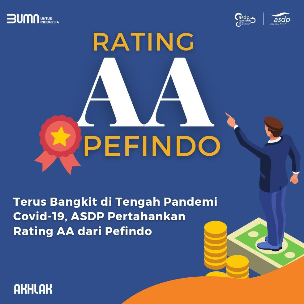 Terus Bangkit di Tengah Pandemi Covid-19, ASDP Pertahankan Rating AA dari Pefindo 28 September 2022 Jakarta, 28 September 2022 --- PT ASDP Indonesia Ferry (Persero) kembali meraih rating AA (Double A/Stable Outlook) dari PT Pemeringkat Efek Indonesia (Pefindo) dengan prospek untuk perusahaan stabil. Rating ini berlaku sejak 21 September 2022 hingga 1 September 2023.Corporate Secretary PT ASDP Indo...