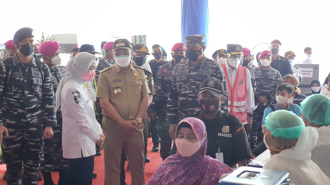 TNI AL-KKP Wilayah II Banten-Kemenhub dan ASDP Gelar Serbuan Vaksin Covid-19 1.500 Orang Masyarakat Pelabuhan Merak dan sekitarnya telah Divaksinasi