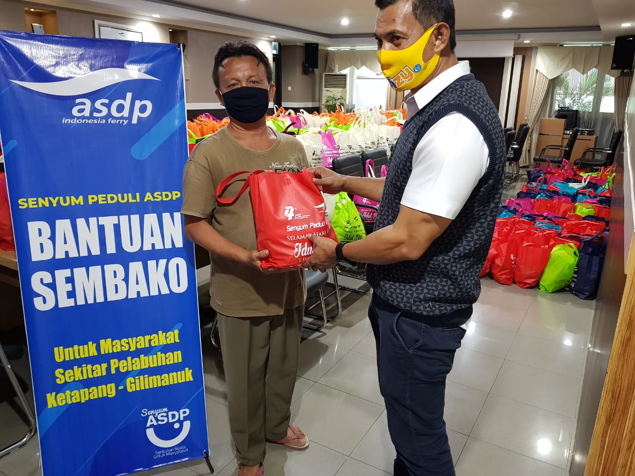 21 Mei 2020Jakarta, 21 Mei 2020 --- Menyambut Hari Raya Idul Fitri, PT ASDP Indonesia Ferry (Persero) berbagi kebahagiaan dengan masyarakat di sekitar Pelabuhan yang berada di 9 Provinsi Indonesia, yakni memberikan sebanyak 3.671 paket sembako bagi masyarakat sekitar Pelabuhan di Provinsi Batam, Bangka, Lamp...